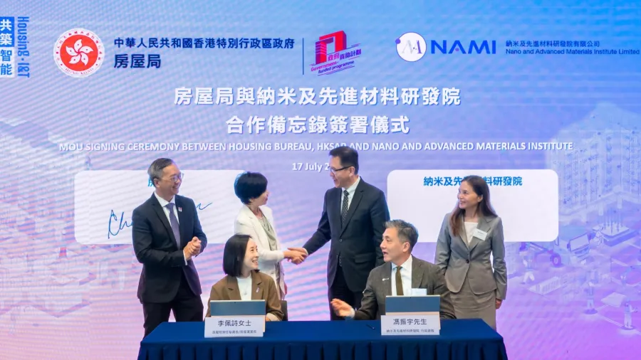 The Housing Bureau (HB) and Nano and Advanced Materials Institute (NAMI) signed a memorandum of understanding (MoU) on 17 July for the establishment of a complete innovation ecosystem in the construction industry.